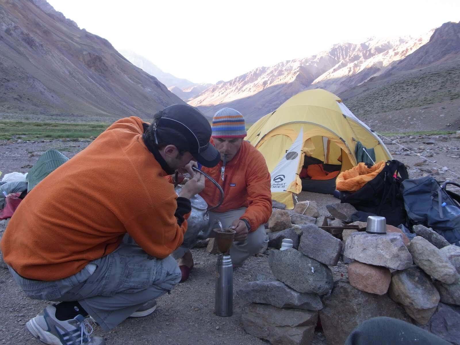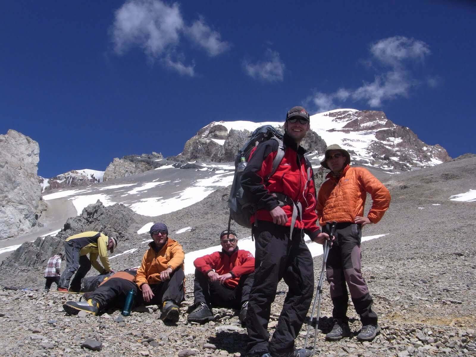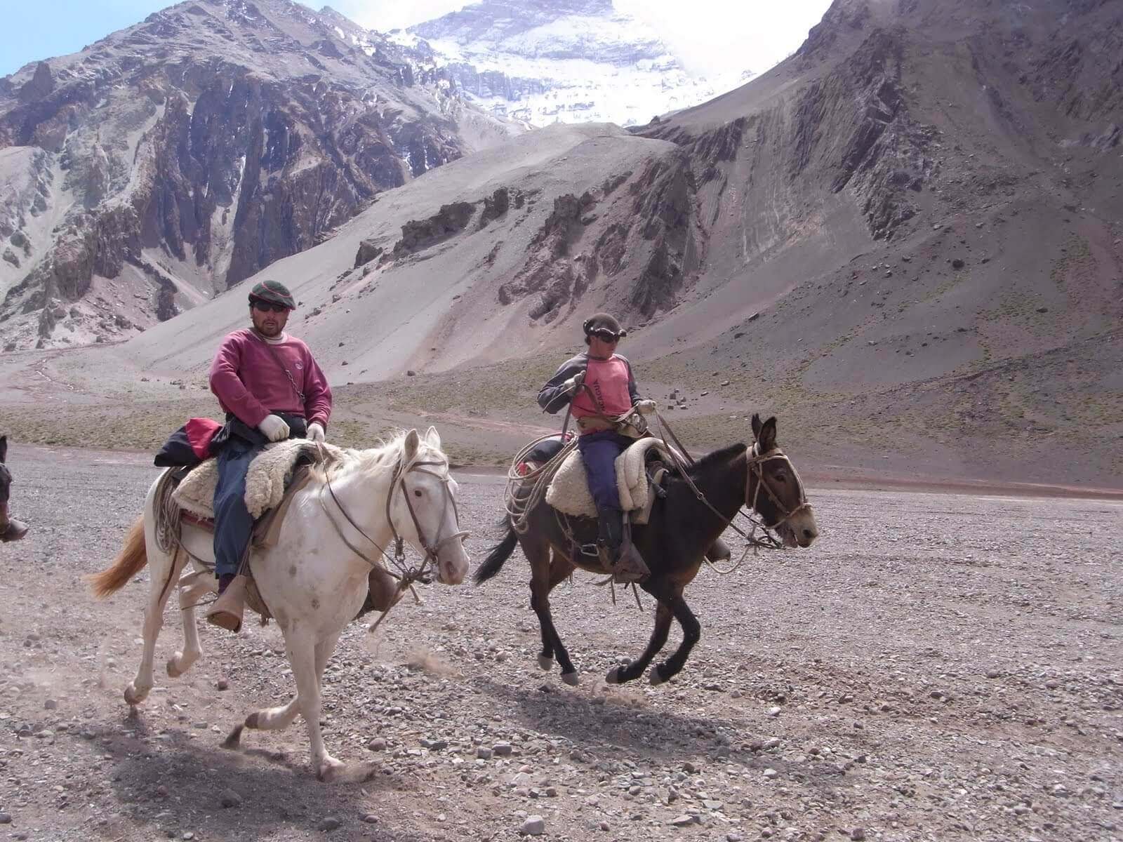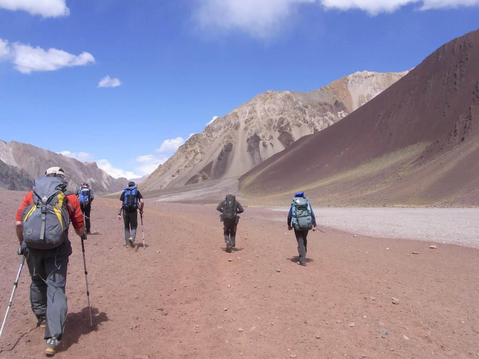Gestartet ist unsere Gruppe in der Weinstadt Mendoza, im Osten des Landes. Mit dem Bus fuhren wir nach Punta de Vacas, einem kleinen Ort am Paso de la Cumbre, dem Pass zwischen Argentinien und Chile. Drei Tagesmärsche dauerte es von dort, entlang dem Rio de las Vacas und dem Relincho Canyon, bis ins Basecamp Plaza Argentina, auf 4200 Metern über Meer.