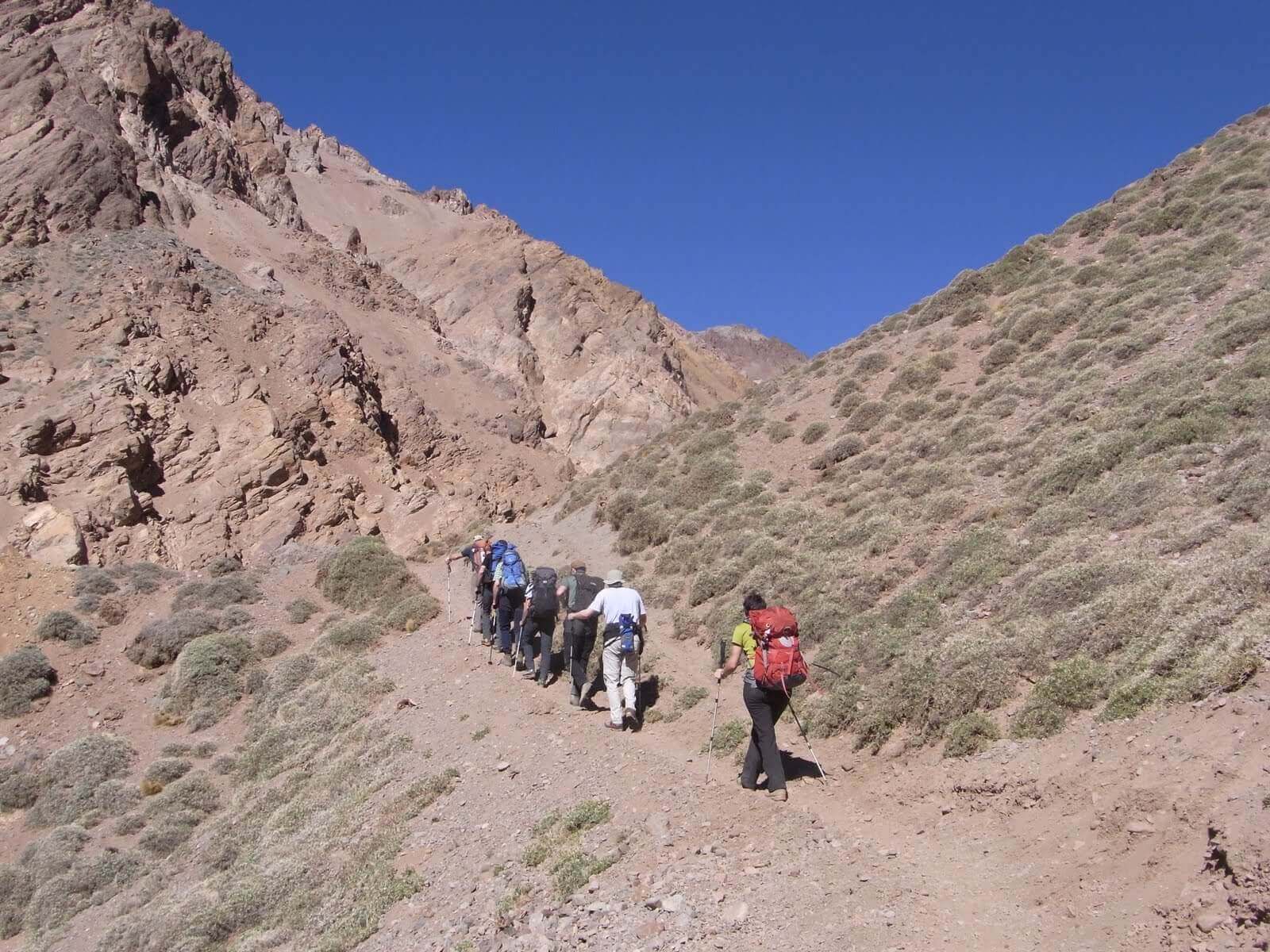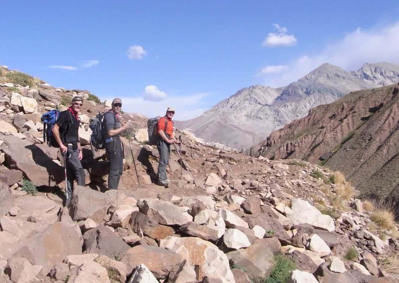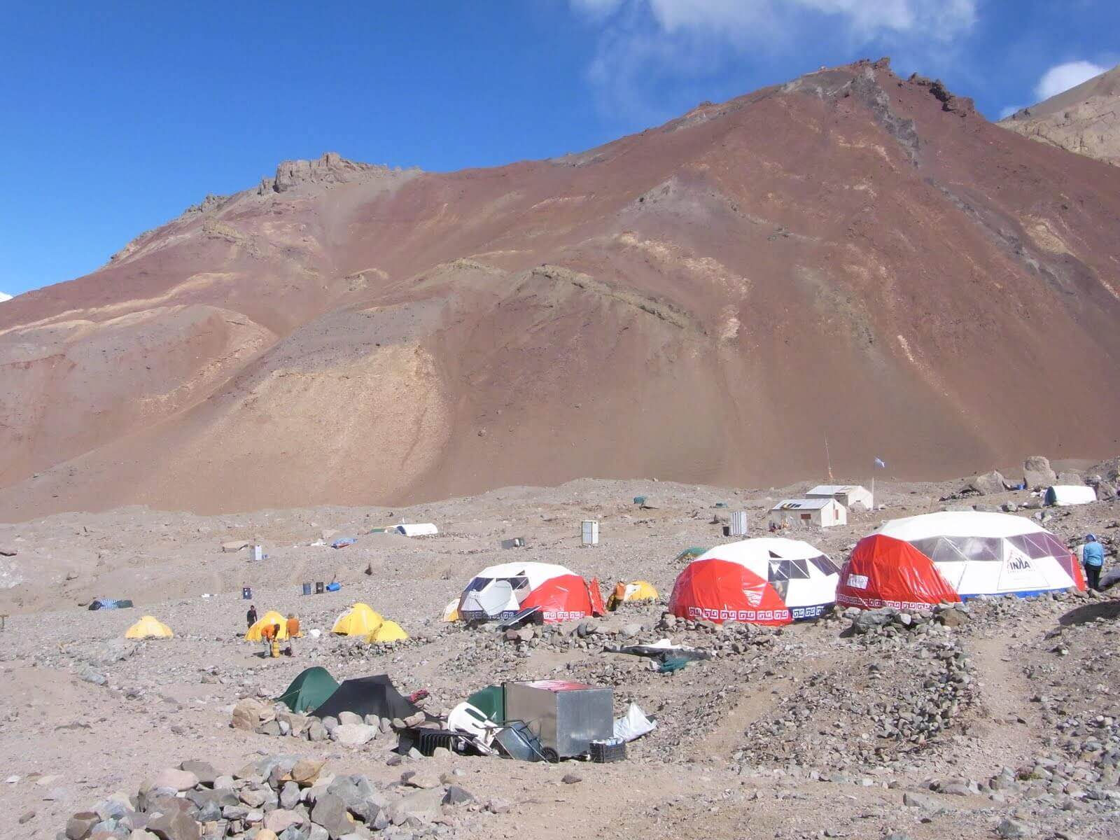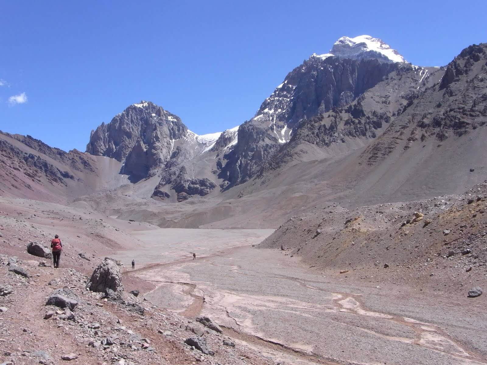 Gestartet ist unsere Gruppe in der Weinstadt Mendoza, im Osten des Landes. Mit dem Bus fuhren wir nach Punta de Vacas, einem kleinen Ort am Paso de la Cumbre, dem Pass zwischen Argentinien und Chile. Drei Tagesmärsche dauerte es von dort, entlang dem Rio de las Vacas und dem Relincho Canyon, bis ins Basecamp Plaza Argentina, auf 4200 Metern über Meer.