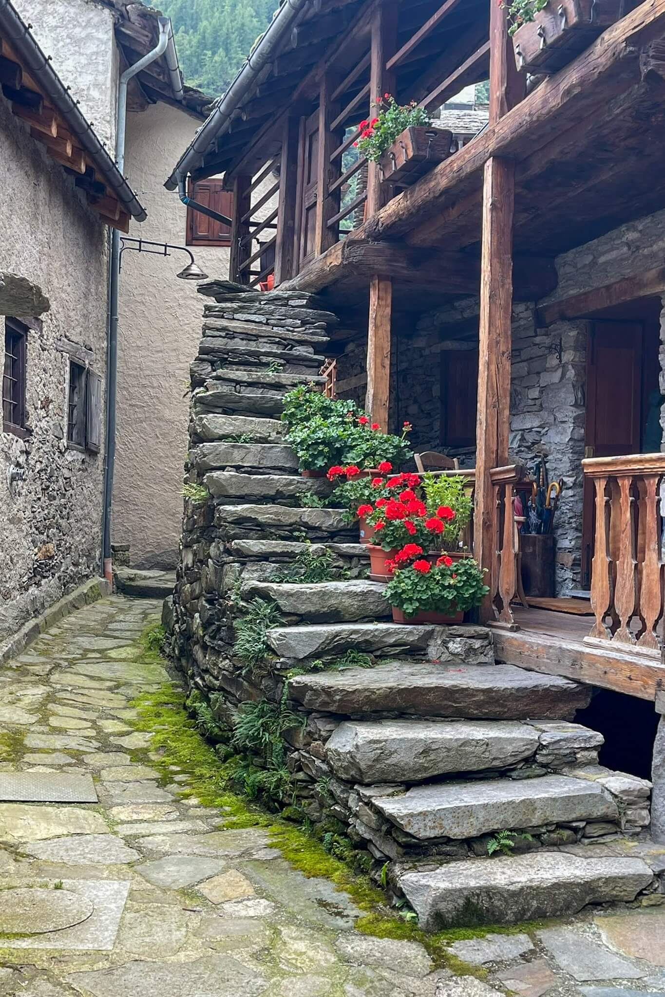 Über Wurzeln und Stein gings nun flott hinab nach Alagna. Gelato-Genuss und Einkauf, zurück zu unserem Haus. Leider war die warme Dusche kurzzeitig noch gegen tausend Schafe entfernt!