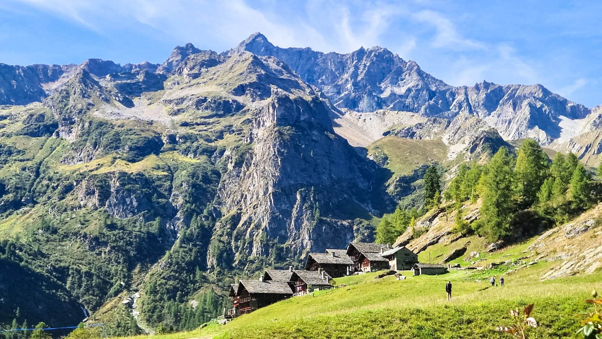 Am Morgen fuhren wir mit den Privatautos ins stille Val Vogna, wo wir unsere letzte Etappe dieses Jahres der GTA – Grande Traversata delle Alpi in Angriff nahmen. Das Tal empfing uns mit ruhigen Weilergruppen, uralten Walserhäusern und dem stetigen Rauschen des Windes durch Baumwipfel, das uns den Tag über begleitete.