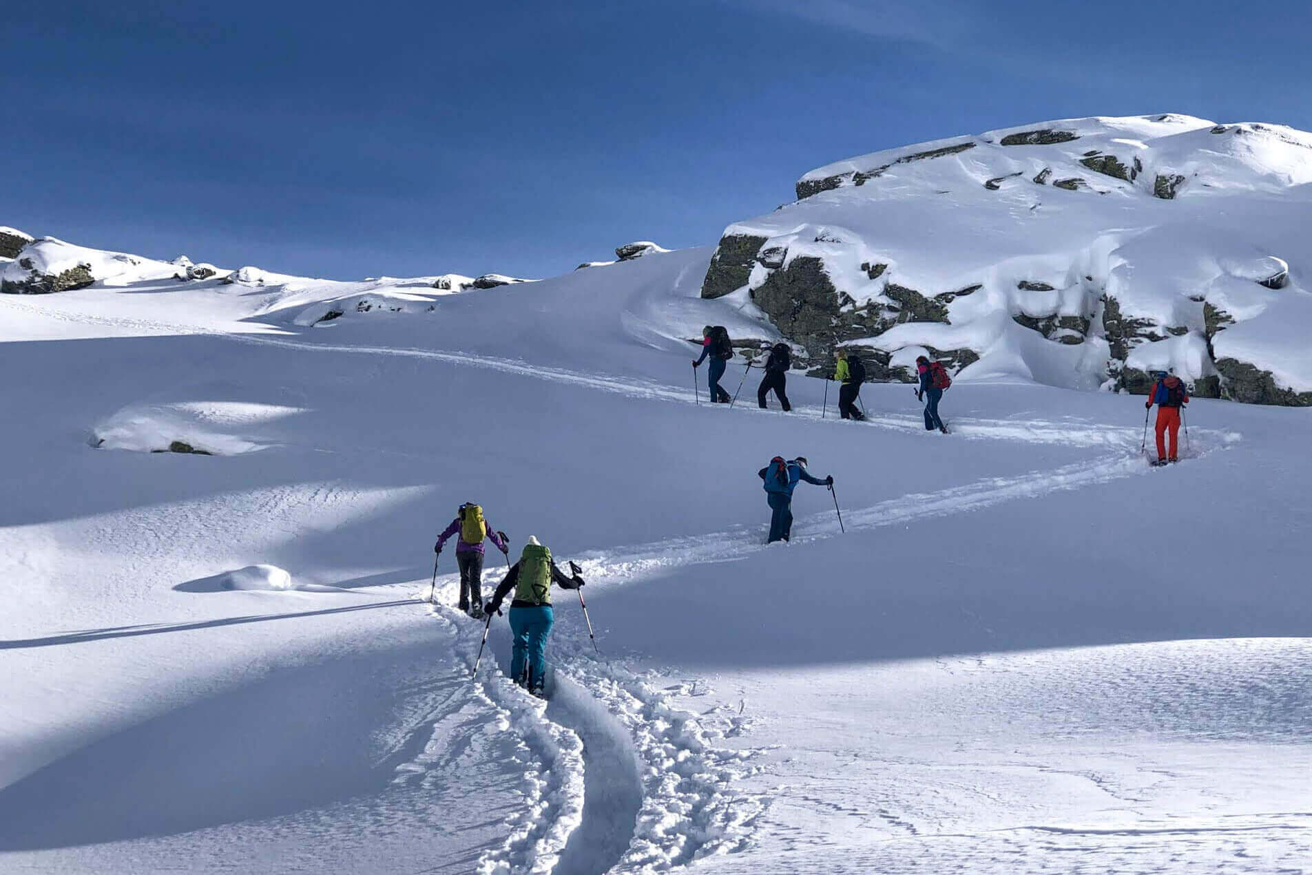 Nach einigem Umplanen unserer Tourenleiter, Siebrig und Dominic, wurde es uns ermöglicht eine tolle 2-tägige Schneeschuhtour nach Weihnachten zu erleben. Dies war für Siebrig die Premiere als Tourenleiterin im SAC. Mit sonnigem Wetter starteten wir am ersten Tag in St. Luc, von wo wir mit der Zahnradbahn ins Skigebiet gefahren sind.