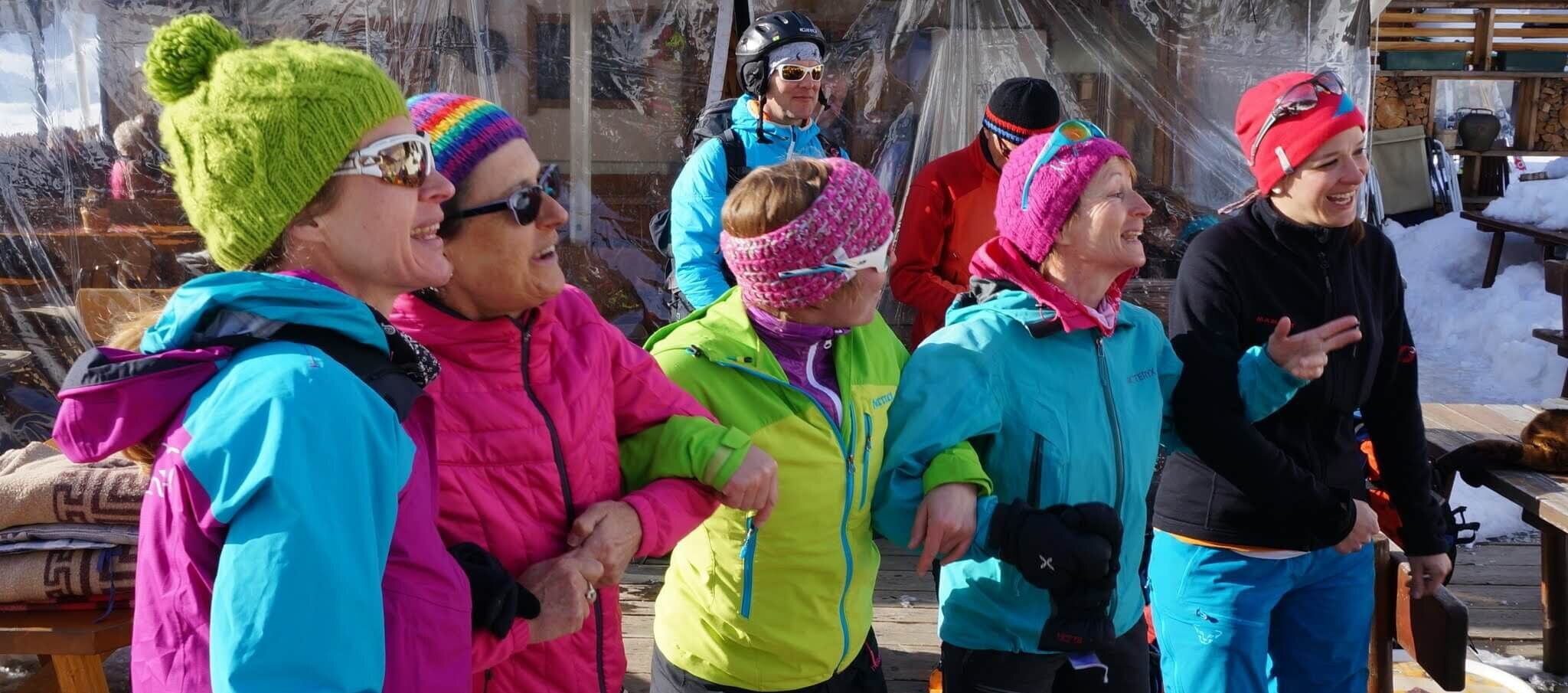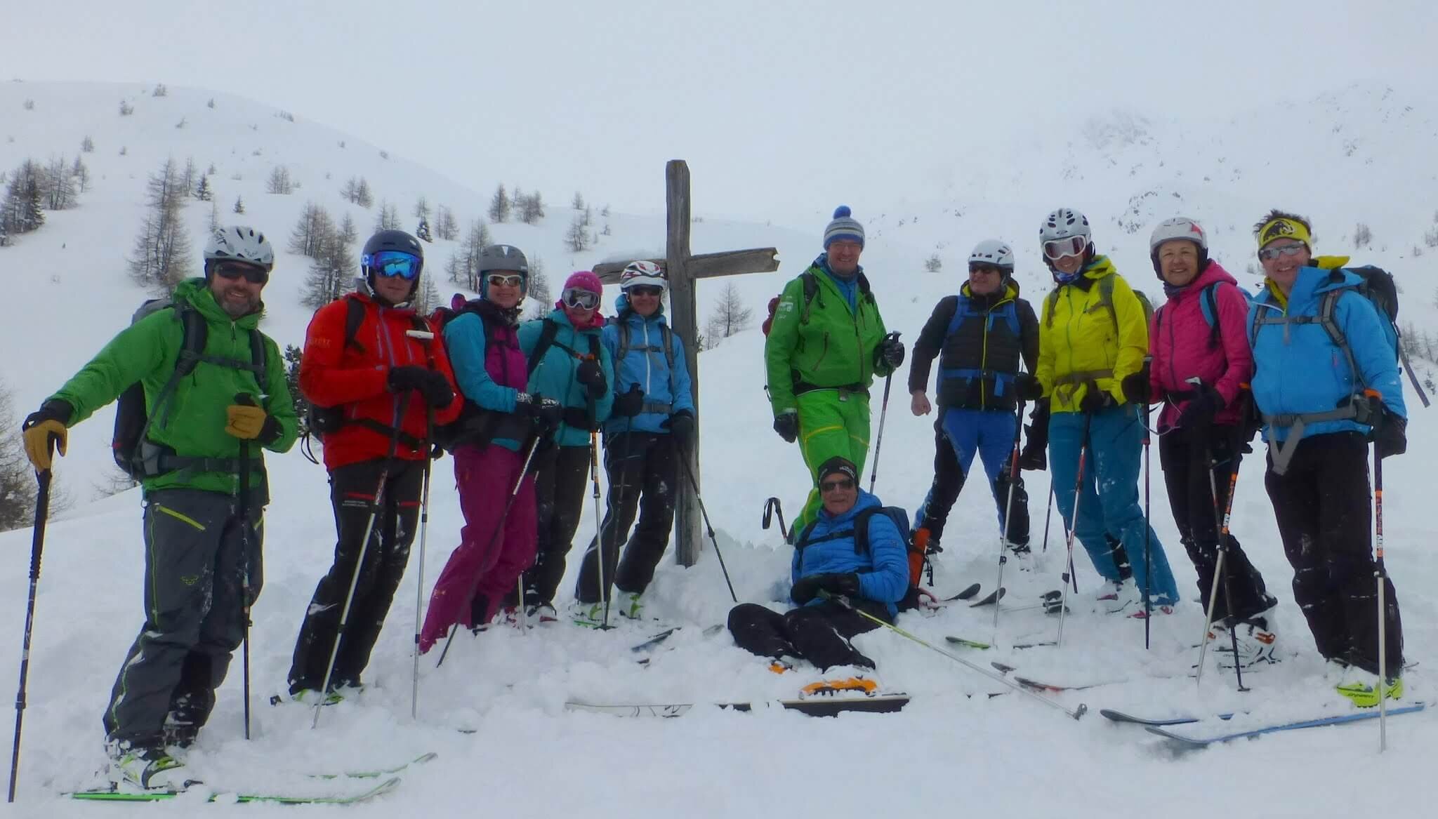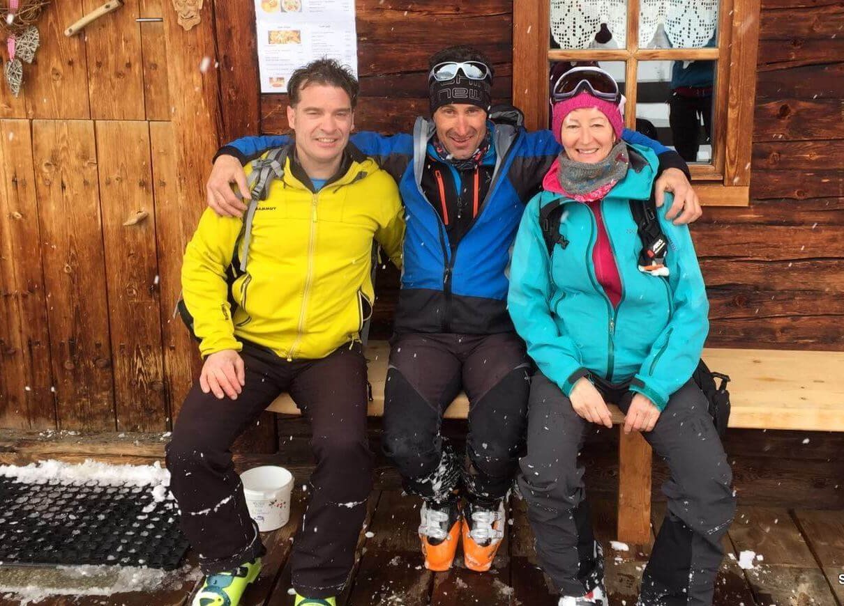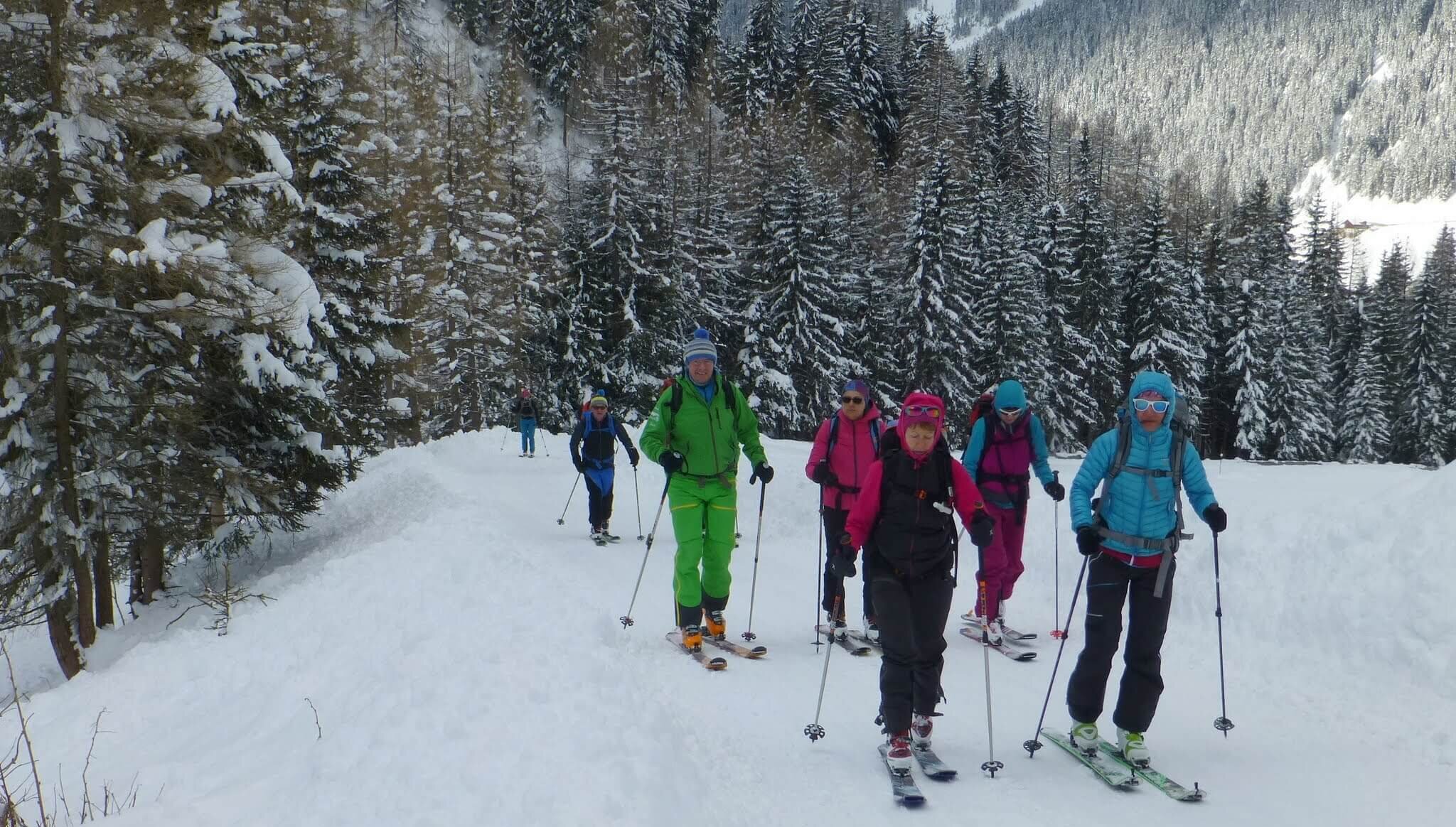 Während des ganzen Winter lauteten die Rückmeldungen der ortsansässigen Kollegen von Ignaz und Regula immer gleich: «Kein Schnee, Touren kaum möglich». Wir liessen uns nicht entmutigen und wurden kurz vor unserer Abfahrt mit viel Weiss in den Südalpen belohnt. Unser Ausweichprogramm auf den weiten Skipisten war so zumindest gesichert. In unserer Tourenwoche stand Erholung und Wohlergehen im Vordergrund. Jeden Tag bestand die Möglichkeit sich an einer Skitour zu beteiligen. Dank angesagtem Spass und Humor zog es uns nach jeder Tour magisch in die idyllischen Alphütten. Doch auch individuelle Programmgestaltung hatte ihren Platz und die Teilnehmer klinkten sich den eigenen Bedürfnissen entsprechen aus. Skitouren, Shoppen, Skifahren, fein Essen und Relaxen – wir kamen voll auf unseren Geschmack. Das Hotel Lanerhof trumpfte jeden Abend mit einem unglaublich breiten Buffet auf. Zum Glück konnten wir unsere Schlemmerdiners am anderen Tagen auf den Touren wieder abbauen! Die gesamte Woche über konfrontierte uns der Lawinendienst mit Gefahrenstufe 3. Unsere Tourenleiter vor Ort planten alles möglichst zurückhaltend und wir konnten uns sorglos ihrer Führung anvertrauen.